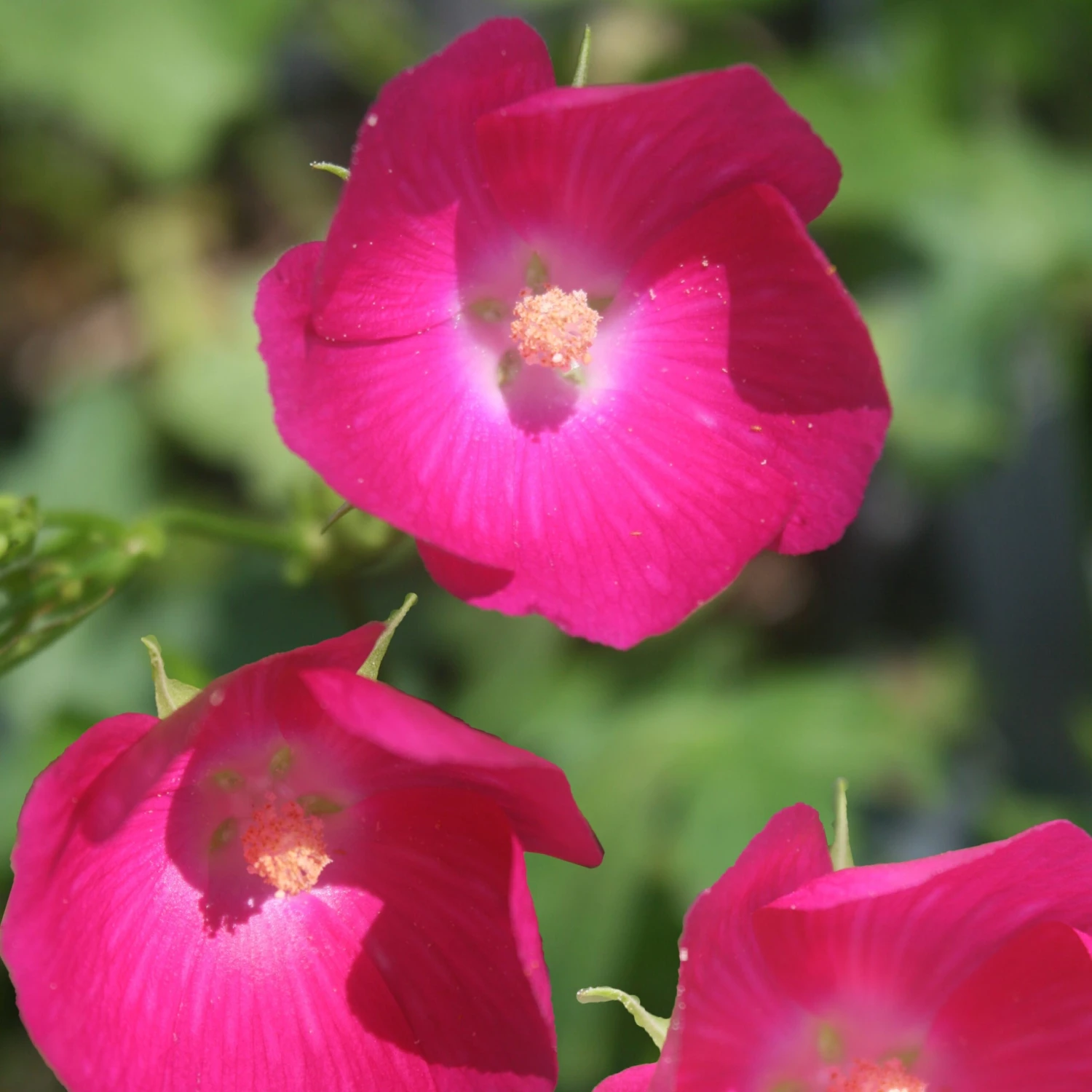 Callirhoe bushii has upward-facing, cup-shaped, magenta blooms for a long season on spreading plants that get about 18″ tall. A perennial, Callirhoe bushii will weave through flower beds, but does not root at nodes. Very similar to C. involucrata but with a much more upright form.